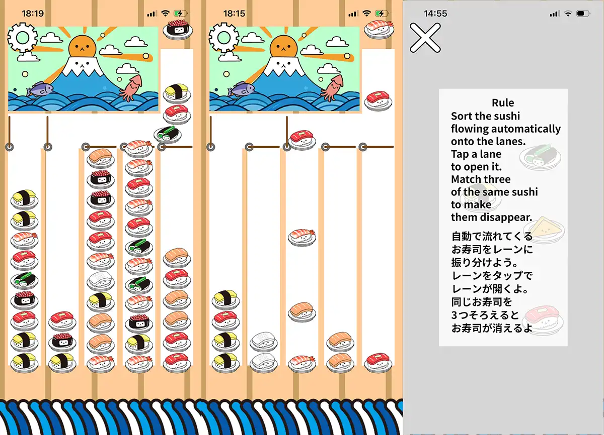 - ゲームジャンル:カジュアルパズル、マッチ系、回転寿司