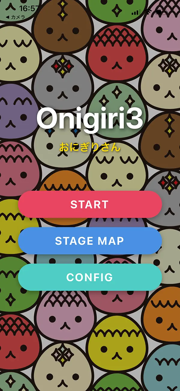 実際のプレイがわかる動画です。カバーアートのようにぎゅっと並んだおにぎりたちが、 太いアウトラインとパステルカラーの世界で楽しいコンボを繰り広げます。